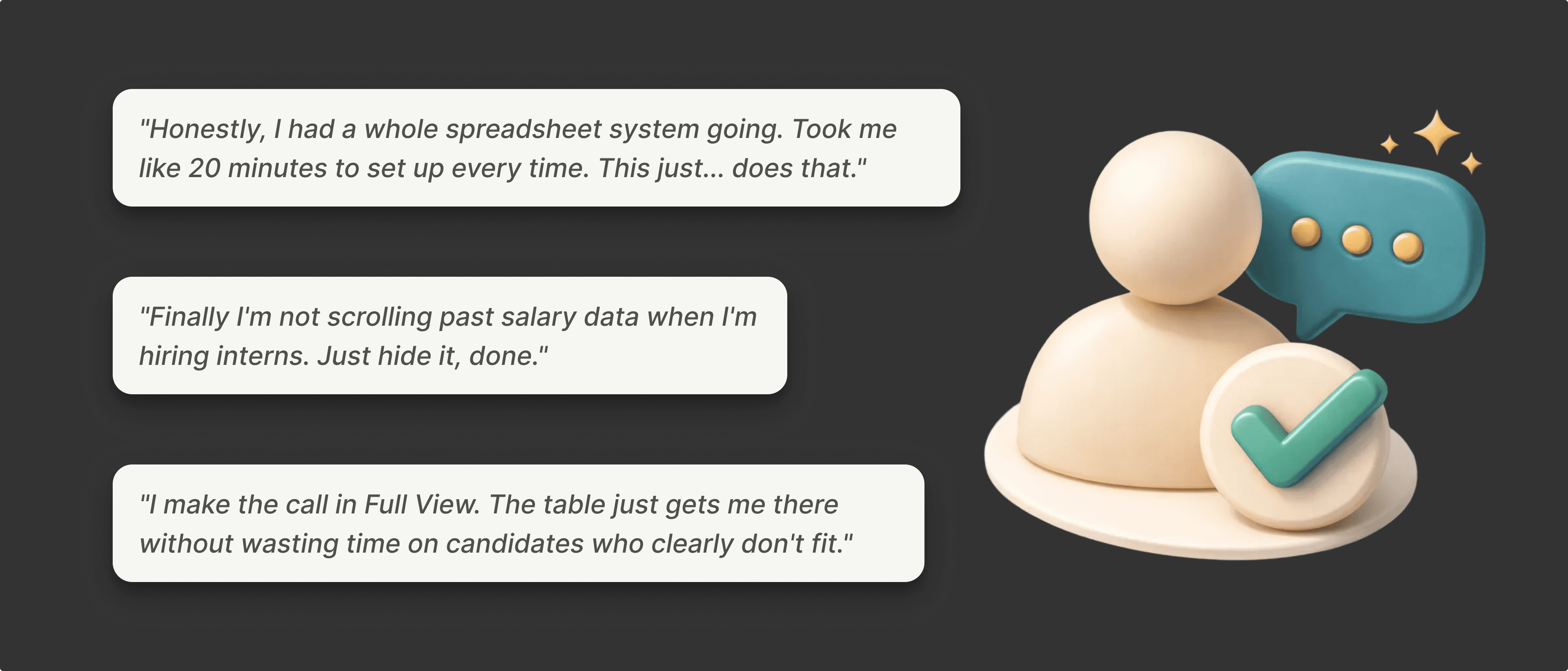 The pattern in feedback was consistent: recruiters felt like the tool finally worked the way they worked. Comparison was effortless. Customization meant no more wading through irrelevant data. Full View meant no more tab juggling.