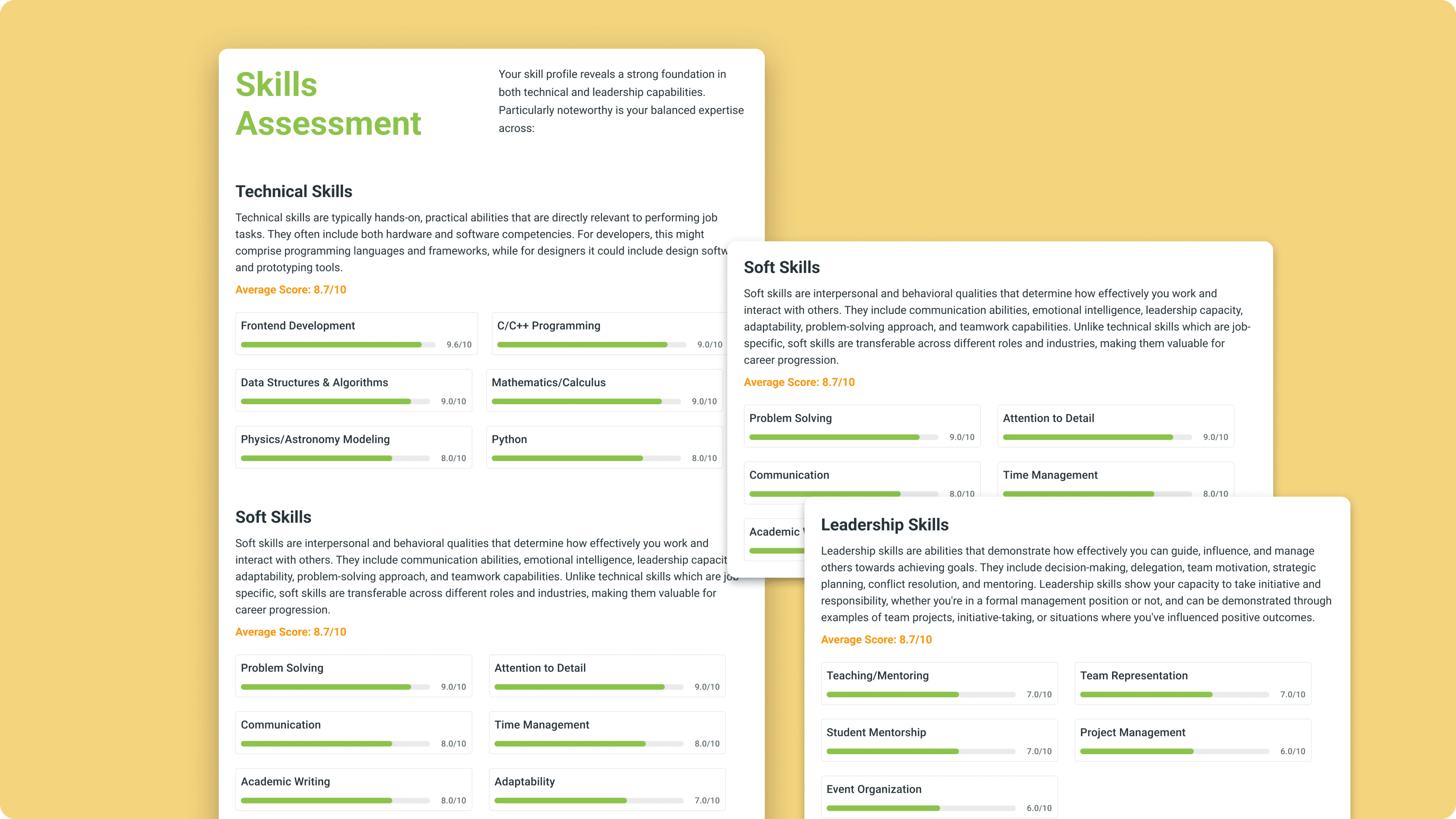 Skills Assessment: All your competencies rated against market benchmarks